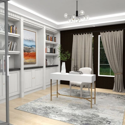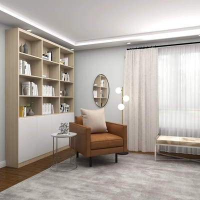 - Features a modern style inspired by a minimalistic design with clean lines and angular structures