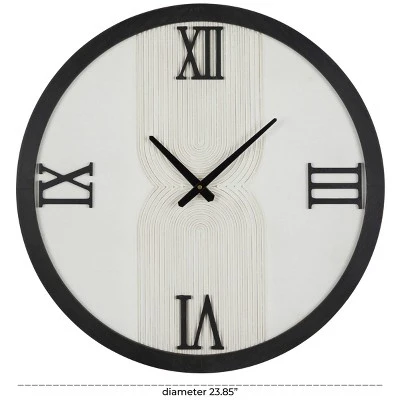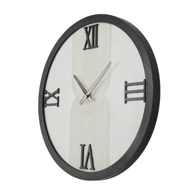Bring functionality and style into your home with a statement wall clock to maximize any open wall space. Take control of your day and keep track of time with this classic designed wall clock with a glamorous flare. Maximize your wall space with this simple black rim clock that will complement any solid background. Requires 1 AA battery. Battery not included. This item ships in 1 carton. Features Roman numerals for 12, 3, 6, 9 markers. The clock mechanism runs silent. Can be hung vertically using the keyholes on the back; nails and screws not included. Suitable for indoor use only. This item ships fully assembled in one piece. This is a single white colored kitchen clock. Modern style.