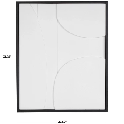 This geometric wall sculpture can be effortlessly hung on your preferred wall to instantly enhance the room’s aesthetic appeal. This item ships in 1 carton. Can be hung vertically using the sawtooths; nails and screws not included. Suitable for indoor use only. This item ships fully assembled in one piece. This is a single white colored wall sculptures. Contemporary style.