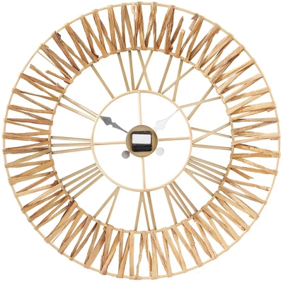 - A water hyacinth weaving around the double border frame adds texture and character to this round wall clock in a large open structure for a creative blend of form and function