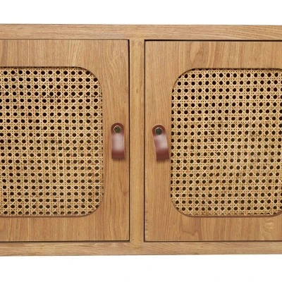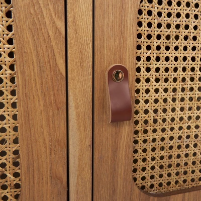 - The cane front doors provide easy access to the inside while adding a unique touch to the design