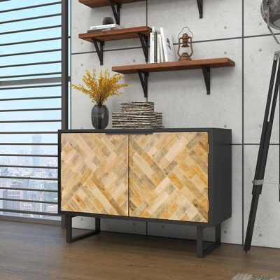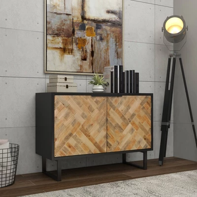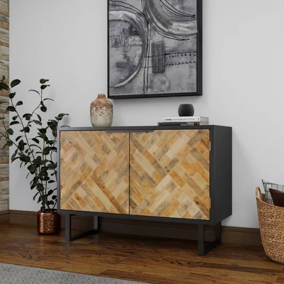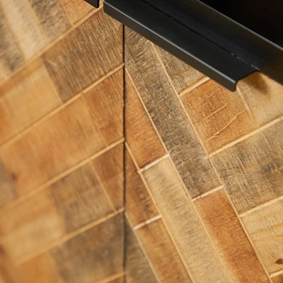A practical yet stylish upgrade that instantly elevate the look of your room. Maintain a clutter free zone and stay organize with this chic cabinet. The product serves both decorative and functional purposes and is best displayed in a contemporary-themed entryway, living room, or kitchen. 2 interior cabinets that both measure 45″L x 15″W x 10″H. This item ships in 1 carton. Cabinet doors are designed with herringbone pattern. Suitable for indoor use only. Maximum weight limit is 100 lbs. This is a single cabinet. Fir cabinet features a single shelf. Contemporary style.