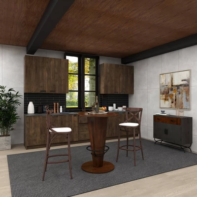 Take a seat at the table and make memory and laughter with your love ones. Breakfast, lunch, dinner, or even game nights are always better when everyone is together around the dining room with this stylish table. Its height was set at a comfortable level for users and to match standard size bar chairs. Add this wooden table to your dining hall, living room, or home bar. This item ships in 2 cartons. Suitable for indoor use only. Some assembly required. Maximum weight limit is 100 lbs. Made in India. Can accommodate 2 people. This is a single brown colored kitchen table. Rustic style.