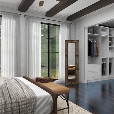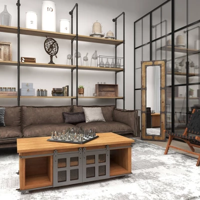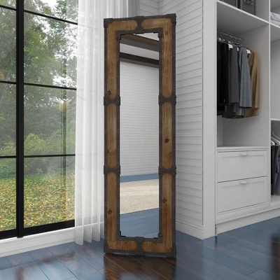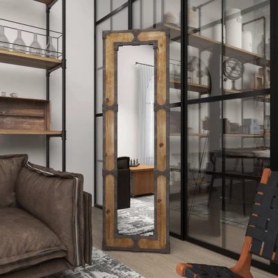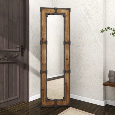 - •Full-length rectangular mirror carries a stained brown wood inner frame housed inside a rustic metal outer frame