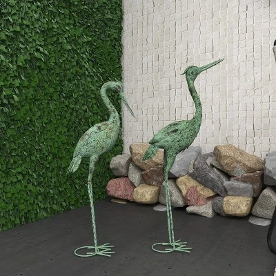 - These mint green crane statues with decorative rustic distressing beautify both indoor and outdoor gardens