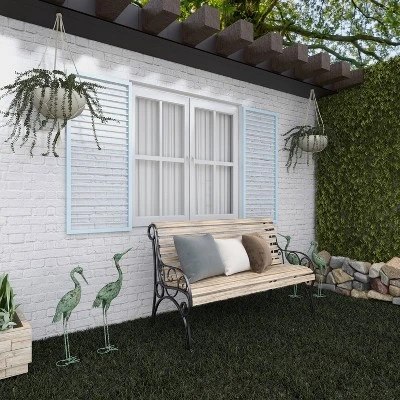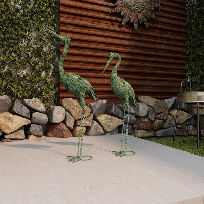 A creative way to add a welcoming look with bold design into your outdoor setting. This garden sculpture is perfect for creating a focal point and adds an inviting look to your outdoor patio space. Display the pieces together in the garden and secure them in place by staking the teardrop-shaped bases into the ground or placing sandbags on them. This item ships in 1 carton. Features 2 standing birds sculpted at their natural state. Suitable for indoor and outdoor use. This garden sculpture comes as a set of 2. Coastal style.