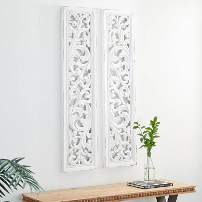 Create an excellent focal point on your walls paired with some cute accent tables, and level up your home with this amazing wall decor. Showcase your personality and turn your walls into an art gallery with this captivating wall décor. This charming wall panel sculpture is ideal for traditional, coastal, and country cottage-themed living spaces. This item ships in 1 carton. Can be hung vertically using the D-rings on the back; nails and screws not included. Suitable for indoor use only. This item ships fully assembled in one piece. This white colored wall sculptures comes as a set of 2. Traditional style.