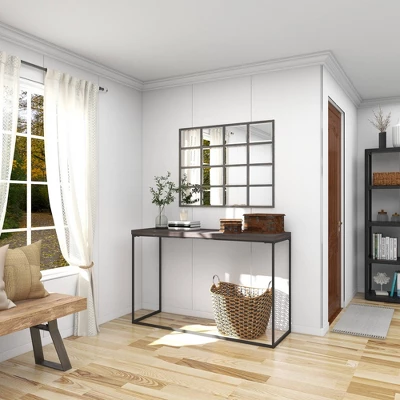 - •These large rectangle wood jewelry boxes carry solid brown wood panels and rustic black metal accents
