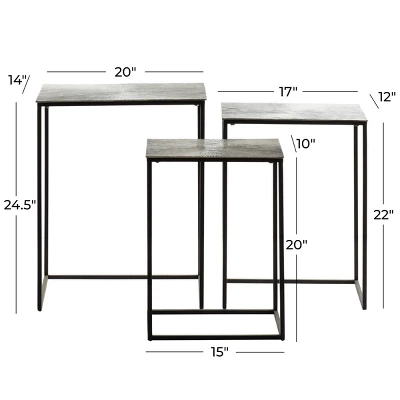Bring a finishing touch to your home with an inviting appeal with this beautifully crafted accent table. A compact friendly table providing you with additional surface storage space any where in your home. Versatile side tables, they can be used as figurine display holders, corner accent pieces, and next to lounge chairs for lamps. Designed with felt or rubber stoppers at the base that prevent scratching furniture and table tops, as well as sliding around. This item ships in 1 carton. Suitable for indoor use only. Maximum weight limit is 50 lbs. Made in India. This accent table comes as a set of 3. Glam style.