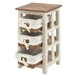 Wood Storage Accent Chest 4 Wicker Basket Drawers Taupe – Olivia & May