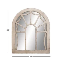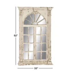 Wood Window Panes Inspired Wall Mirror With Arched Top And Distressing Cream – Olivia & May