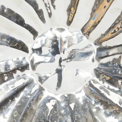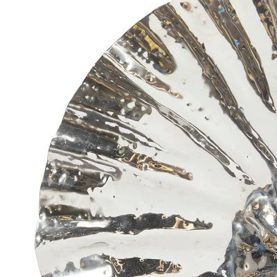 This kitchen platter decor will stand out when displayed on empty walls in your living room with matching decor and colorway. This item ships in 1 carton. Features three decorative wall platters in various sizes. Can be hung vertically using the D-rings on the back; nails and screws not included. Suitable for indoor use only. This item ships fully assembled in one piece. Made in India. This silver colored wall sculptures comes as a set of 3. Glam style.