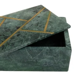 Set Of 3 Marble Box With Gold Linear Lines Green- Olivia & May