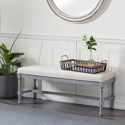 Traditional Linen Upholstered Wood Bench – Olivia & May