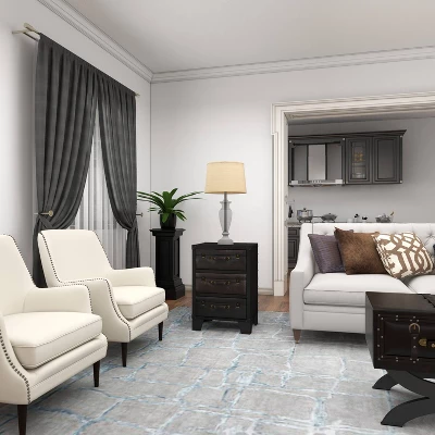 - •This traditional square storage accent table features a black with dark brown finish and antique gold hardware