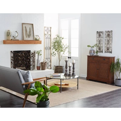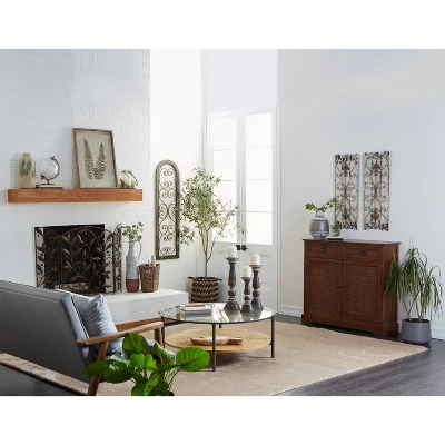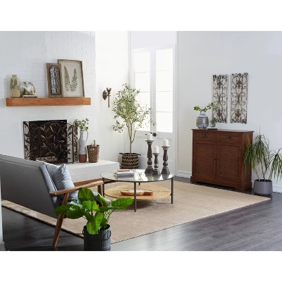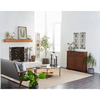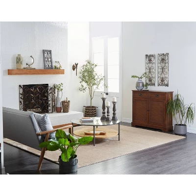 Arrange this louvered cabinet in your entryway, lobby, living room, reading room, or home office. It is ideal to display small planters or ornaments on top to complete its traditional look. A practical yet stylish upgrade that instantly elevate the look of your room. Maintain a clutter free zone and stay organize with this chic cabinet. This brown rectangular cabinet features interior storage space with 37.25″L x 9.25″W x 10.50″H and