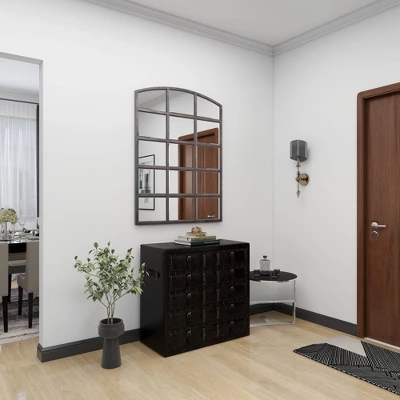 - •This traditional rectangular storage trunk features a black with dark brown undertone and antique gold hardware