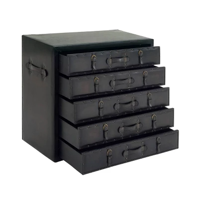 Beautifully crafted with durable structure and design for a long lasting enjoyment to keep your space free of clutter. A spacious piece of furniture that can instantly transform the look of any room in your home. Storage dresser trunk will complement a dark leather sofa with other heirloom decor for the perfect antique design style. This item ships in 1 carton. Black chest features 5 drawers with 25 lbs weight limit. Suitable for indoor use only. Maximum weight limit is 125 lbs. This is a single chest. Traditional style.