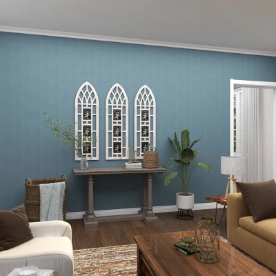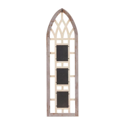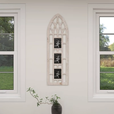 - This whitewashed cathedral inspired wall photo frame features a pointed arch pattern with frames in place of tinted glass
