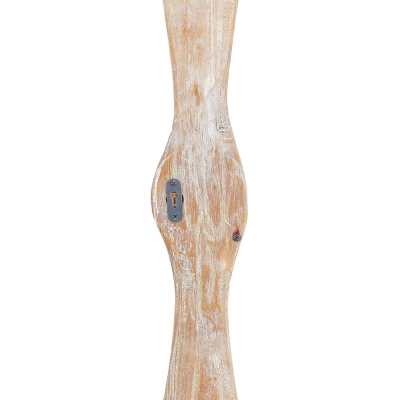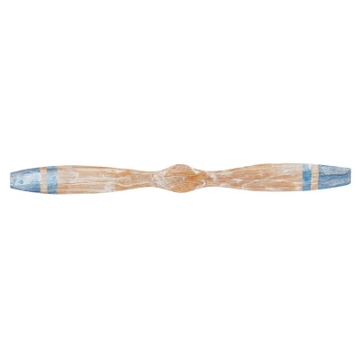 Showcase your adventurous side with this plane propeller decor mounted on your bedroom or living room walls. This item ships in 1 carton. Large wooden airplane propeller wall decor. Wood wall decor makes a great gift for any occasion. Can be hung horizontally or vertically using the keyholes on the back; nails and screws not included. Suitable for indoor use only. This item ships fully assembled in one piece. This is a single brown colored wall sculptures. Industrial style.
