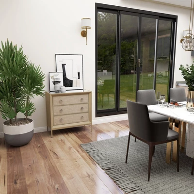 - •This glam style chest features 3 rectangular drawers with 2 round ring knobs each