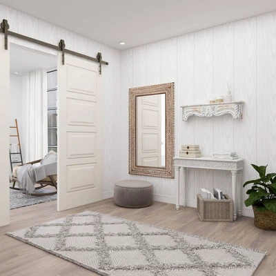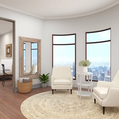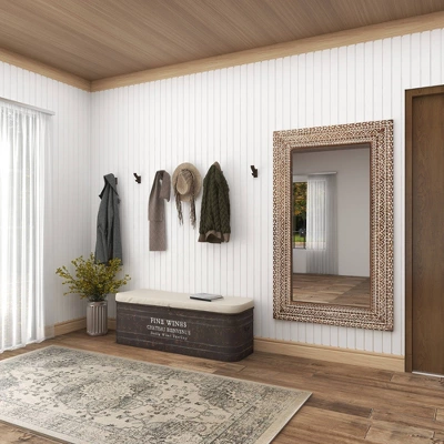 - •This rectangular oversized floor mirror features a reflective glass finish and a textured brown and white wooden finish