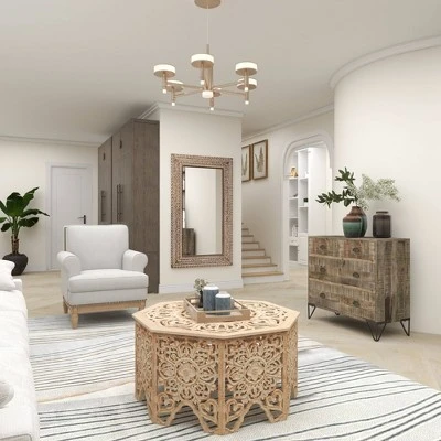 - •This long rectangular floor mirror is made of beveled mirror, Monterey pine wood, and mango wood materials