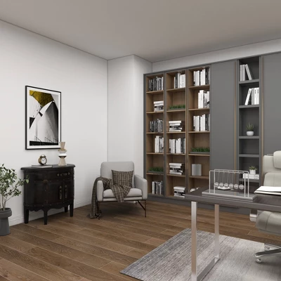 - An accent furniture that features rectangular wooden storage chest with rectangular drawers and woven baskets
