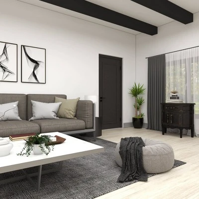 - Cedar wood and MDF construction with faux leather upholstery and brass hardware
