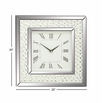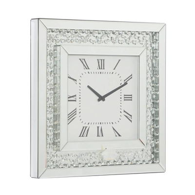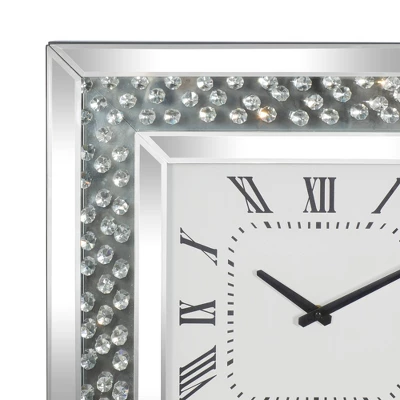 - •This elegant wall clock features a modern square shape and a studded mirror design
