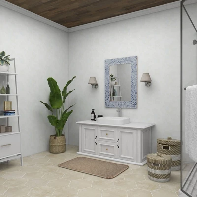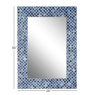 - •This rectangle wall mirror features a tile of blue and white diamond mosaic inspired pattern