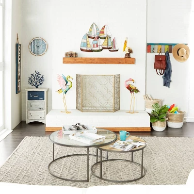 - •This wall decor features a coastal style inspired ship wheel design complete with distressed color finishing