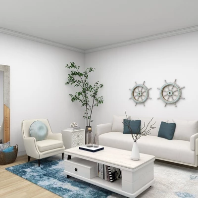 This coastal style inspired ship wheel decor will send ocean vibes into your living space with ease. This item ships in 1 carton. Wood wall decor makes a great gift for any occasion. Can be hung vertically using the D-rings on the back; nails and screws not included. Suitable for indoor use only. This item ships fully assembled in one piece. This is a single blue colored wall sculptures. Coastal style.