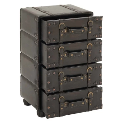 Beautifully crafted with durable structure and design for a long lasting enjoyment to keep your space free of clutter. A spacious piece of furniture that can instantly transform the look of any room in your home. Storage dresser table will complement dark faux leather sofa with other heirloom decor for the perfect antique design style. This item ships in 1 carton. Black chest features 4 drawers with 25 lbs weight limit. Suitable for indoor use only. Maximum weight limit is 25 lbs. This is a single chest. Traditional style.