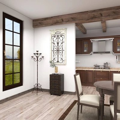 - •Tall accent side chest highlights a black glossy finish with antique gold hardware
