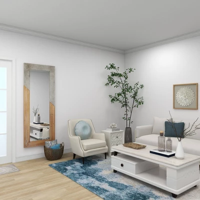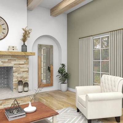 - •This rectangular floor mirror features a farmhouse style inspired design with a two-tone design on the wooden frame