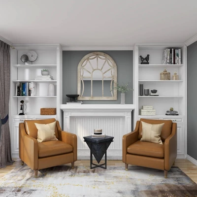 - Arched wall mirror measures 36″L x 1″W x 44″H and weighs 36.8 lbs.